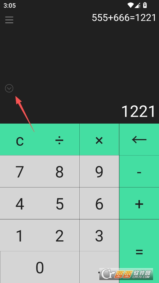 完成计算之后,顶级结果左侧的向下箭头按钮