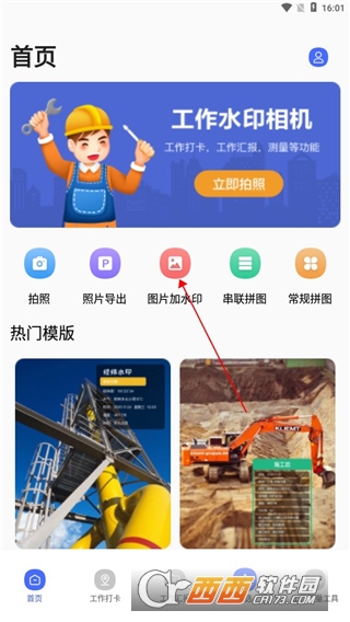 1、在本站下载安装并打开软件,进入首页,点击照片加水印进入页面。