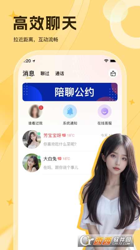 软件采用简约风格设计,界面没有繁杂的元素,各项功能模块一目了然。不用再担心线下社交的尴尬,线上就能轻松开启聊天模式,慢慢拉近彼此的距离。
