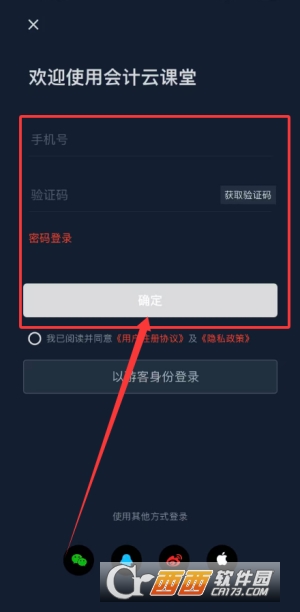 2、在登录页面上准确填写注册时使用的手机号码,并通过短信接收并填写动态验证码完成身份核验登入系统。