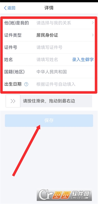 4、在信息填写页面,填写信息后点击保存,即可完成家庭成员的添加操作。