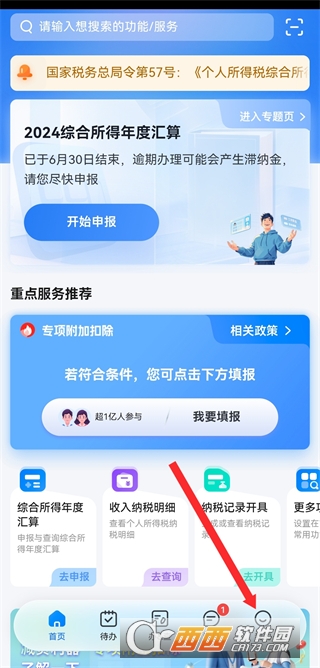 1、打开个人所得税APP首页,点击我的,进入个人功能操作页面。