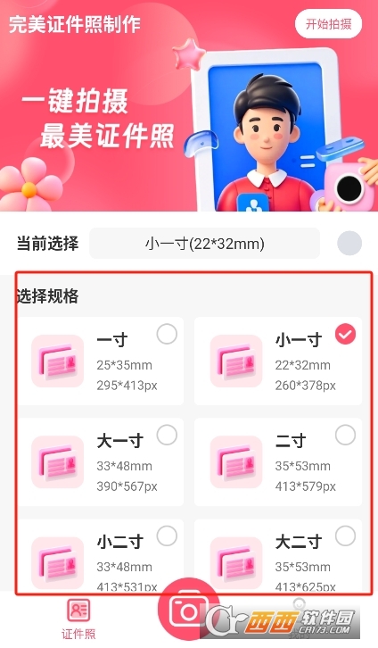 2、可以选择证件照尺寸
