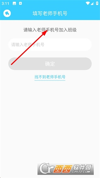 4、注册登录后会进入填写老师手机号界面,输入老师手机号并点击确定,即可加入对应的班级,参与班级相关的学习内容。