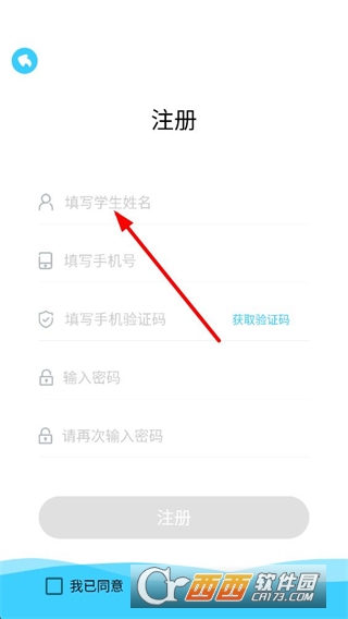 2、若未注册账号,可点击免费注册进入注册界面,按提示填写学生姓名、手机号,获取并填写验证码后设置密码,完成注册。