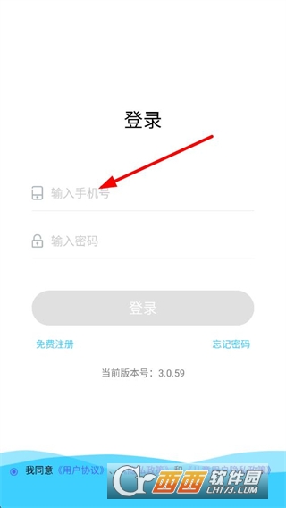 1、进入应用先到登录界面,需依次填写手机号和密码,勾选同意相关协议后点击登录按钮,即可进入应用开始使用。