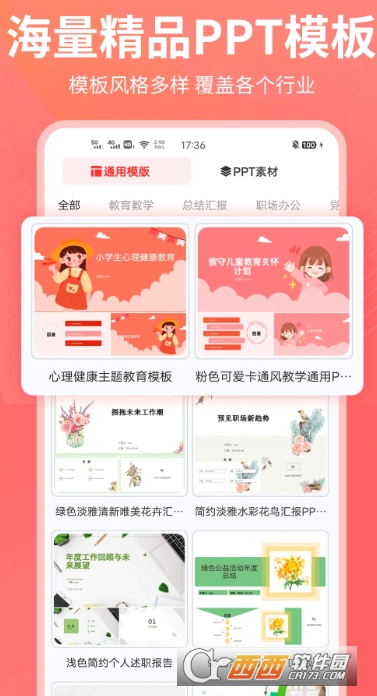 全场景模板与素材覆盖:拥有数千套分类模板,涵盖商务汇报、教育课件、论文答辩、医疗专题等垂直领域,搭配可编辑的图表、图标、动画素材及小清新、商务、创意等多元风格,精准适配不同行业需求,无需额外寻找外部素材。