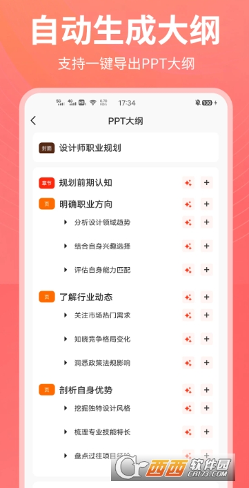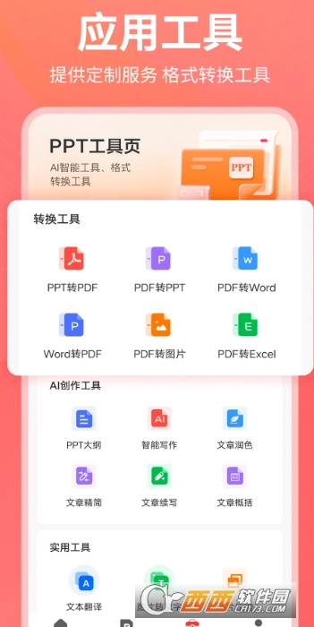 输入主题、核心要点或上传文档,即可快速生成结构完整、排版精美的PPT初稿,大幅节省从零搭建的时间;内置数千套分类模板,涵盖商务汇报、毕业答辩、活动策划、教育培训等多元场景,搭配小清新、商务、创意等风格素材,无需专业设计能力也能打造视觉亮点。同时,软件整合PDF与 Word、Excel、图片等多格式双向转换功能,还支持AI写文案、在线编辑修改等实用工具,实现一站式PPT制作体验。