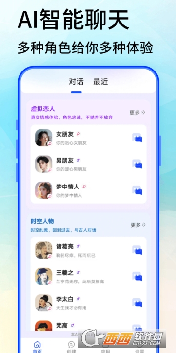高自由度角色与场景定制:提供虚拟恋人(如夏若初)、时空人物(诸葛亮、梵高)、动漫风格伴侣(Ani、Rudi)等预设角色,支持自定义角色性格、背景及能力(如 “星际舰长”“学术导师”),同时可设置数十种话题(恋爱技巧、社交指导等),交互场景个性化极强。