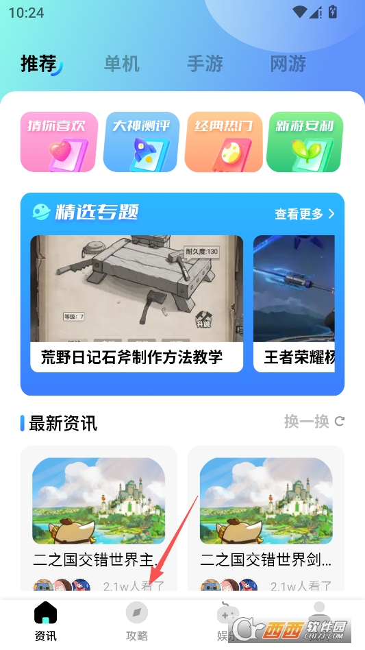 进入软件主页点击下方攻略版块