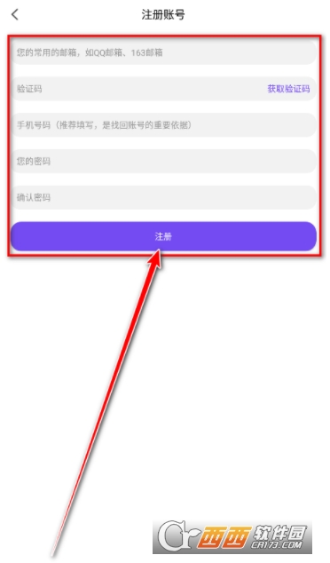 4.请输入常用的邮箱账号、验证码、手机号码、密码、确认密码,然后点击注册即可。