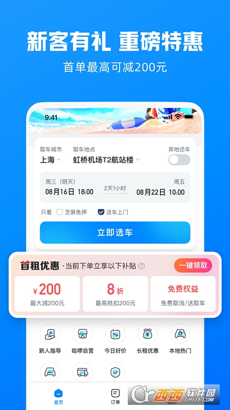 多元化服务预约功能,支持送车上门、异地还车、一键续租等个性化服务。还能在线购买各类保险套餐,根据自身需求选择基础保障或更全面的优享服务,让出行更安心。