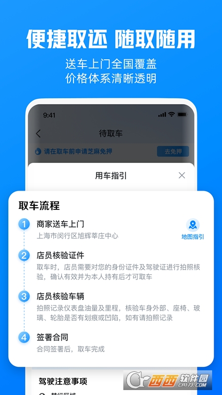 全流程线上化操作功能,从身份认证、驾照验证,到订单支付、合同签署,再到验车拍照、费用结算。大部分环节都能在线上完成,线下只需简单核验证件即可取车,节省了大量时间。