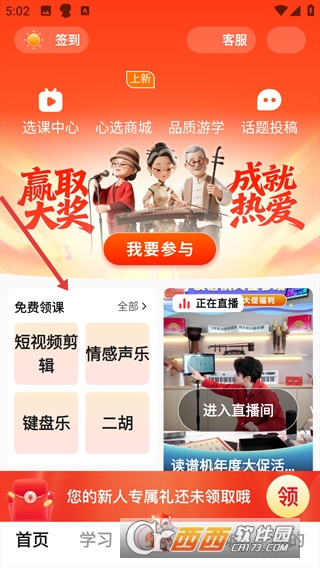 1. 海量兴趣课程学习,涵盖电子琴、声乐、书法、绘画、舞蹈、摄影等数十种品类。课程按难度分级,从入门基础课到进阶提升课全都有,满足不同学习阶段的需求,零基础也能轻松入门。