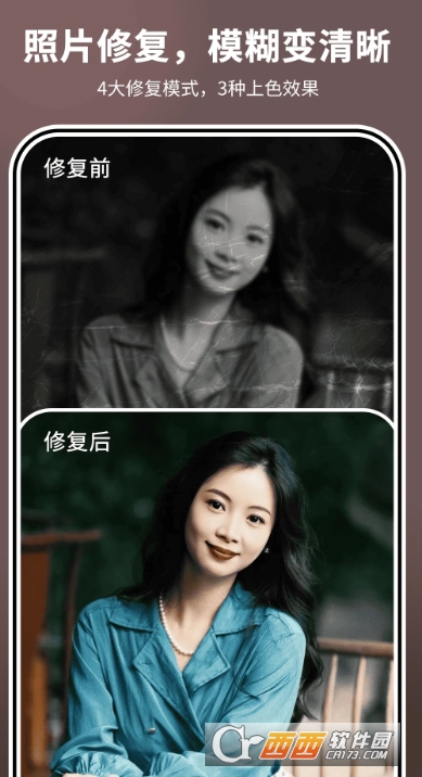 照片时光机app是一款集实用性与趣味性于一体的全能照片编辑工具,凭借前沿AI技术与丰富功能设计,成为照片处理领域的热门之选。软件主打老照片修复核心功能,通过智能增强、划痕修补、像素提升等技术,能让模糊破损的旧照重焕清晰,还可精准还原黑白照片的自然色彩,轻松唤醒藏在影像里的珍贵回忆。
