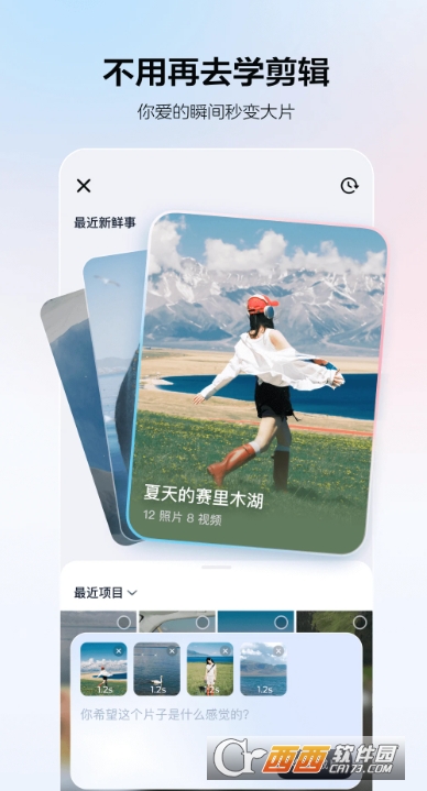 剪小映app纯净安卓版是一款功能强大,便捷实用的创意内容生成工具,支持0门槛批量出大片,日常碎片秒变高光时刻。只需选择本地照片进行上传 ,AI助手就会根据照片内容与要求进行智能分析 ,同时快速为你打造专属创意内容,还能进行高度自定义的个性化修改,为用户打造一站式的高效创作功能,十分智能快捷。