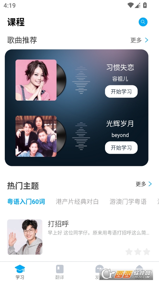 3. 粤语歌曲教学,精选经典粤语歌曲作为教学素材,拆解歌词中的难点词汇和发音。提供逐句跟唱、节奏校准功能,让用户在学唱歌曲的过程中,巩固词汇、纠正发音,轻松学会唱粤语歌。