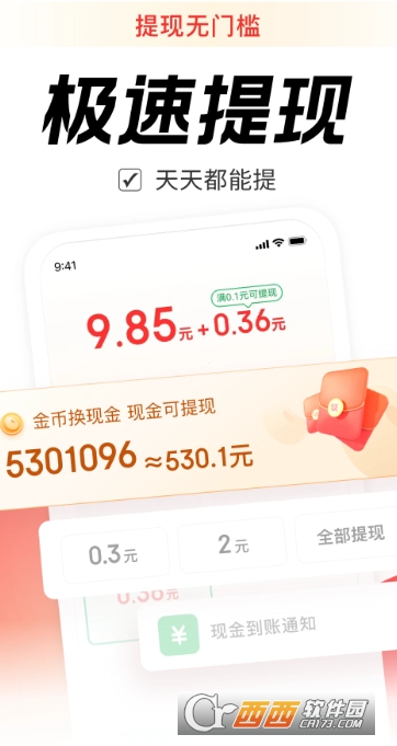 A:金币与现金的兑换比例会根据平台运营规则动态调整,具体以软件内 “我的金币” 页面显示为准。兑换后无需等待漫长审核,提现操作完成后快速到账,全程不扣税、无手续费。支持小额、大额提现,且无需绑定银行卡,既保障资金安全,又能让用户及时兑现收益,到账状态可在 “我的现金 - 提现记录” 中查询。