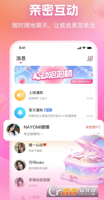 附近畅谈app最新免费版是一款便捷实用的在线社交互动交友平台,专为同城单身人士打造,能够根据用户的定位信息智能推荐附近好友,包含各种年龄,职业,选择感兴趣的用户就能在线语音视频聊天,一对一私聊搭讪。内置了图文动态互动广场,能够在线互动交友,还提供了丰富的视频直播间选择,快速加入聊天拉近社交距离。