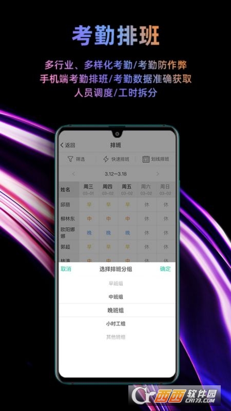 3. 智能考勤与排班管理,支持多种考勤规则配置,适配不同行业的考勤需求。可实现手机打卡、人脸识别打卡等多种打卡方式,自动核算考勤数据,生成考勤报表,同时支持智能排班,优化人力配置,降低考勤管理成本。