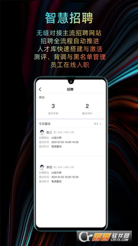 企业招聘与人才选拔场景,通过软件可实现招聘流程的全线上管理,从岗位发布、简历筛选、面试邀约到Offer发放全程数字化。还能搭建企业人才库,实现人才的精准匹配和储备,帮助企业高效招到合适的人才,完善“选”的环节。