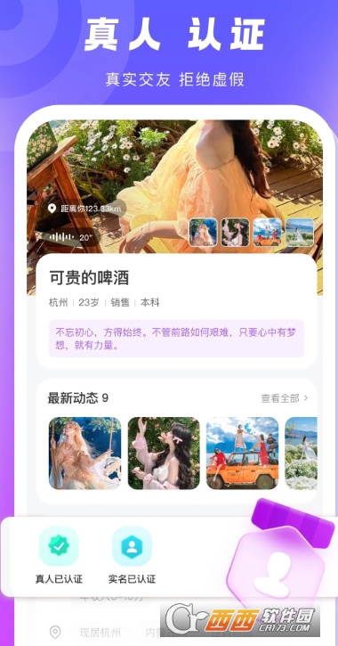 乡伊APP是一款聚焦真实交友的高品质社交平台,以真人认证、拒绝虚假为核心宗旨,为广大单身用户搭建起高效、安全且有趣的互动桥梁。平台深耕社交本质,凭借严格的双重认证机制,让每一位用户都经过真人与实名认证审核,从源头杜绝虚假账号,为交友真实性保驾护航。