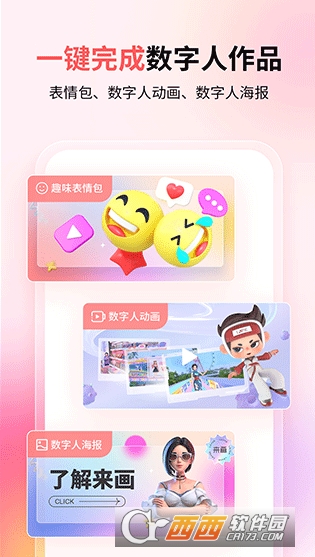 同时,其数字人创作功能极具特色,支持捏脸定制、照片生成数字人、虚拟空间互动等玩法,还能一键导出无水印高清视频,无缝分享至抖音、微信等社交平台。模块化操作设计与云端同步功能,让用户随时随地跨设备创作,无论是小朋友的趣味动画、职场人的办公素材,还是创作者的创意作品,都能通过这款工具高效实现,成为兼顾实用性与趣味性的必备创意助手。
