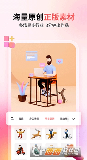 全能型创作工具聚合:整合动画制作、数字人生成、视频剪辑、图片设计四大核心功能,提供海量正版模板(覆盖微商营销、教育科普、婚礼邀请等细分场景),无需切换多软件即可完成从素材设计到成品输出的全流程创作。