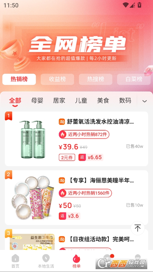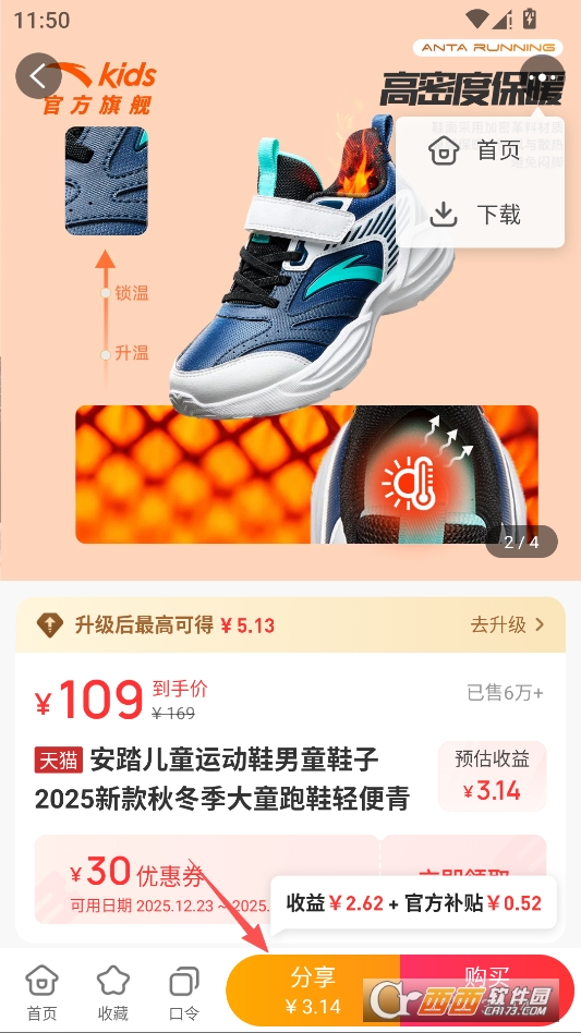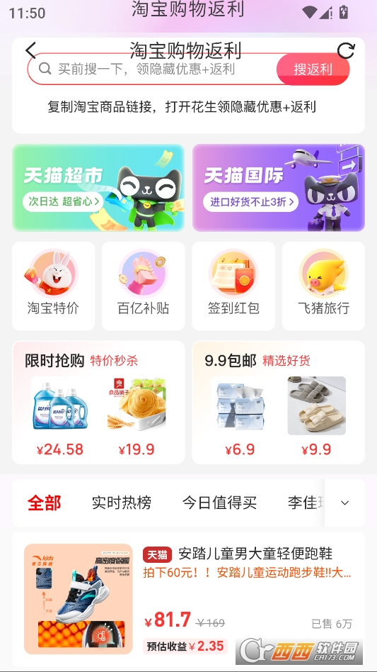 授权成功后来到购物返利界面,挑选任意商品