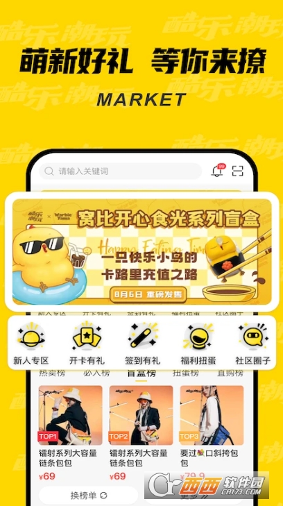 酷乐潮玩app最新版本是一款专注潮流潮玩的在线购物平台,拥有海量潮玩盲盒,次元周边,潮搭服饰,日杂周边等商品。每天都会更新精选新品,每日秒杀,与多样化的热销榜单推荐,点击感兴趣的商品就能一键下单购买。同时平台还内置了互动交流社区,各种热门IP,官方活动,热点咨询实时获取,满足不同用户的使用需求。