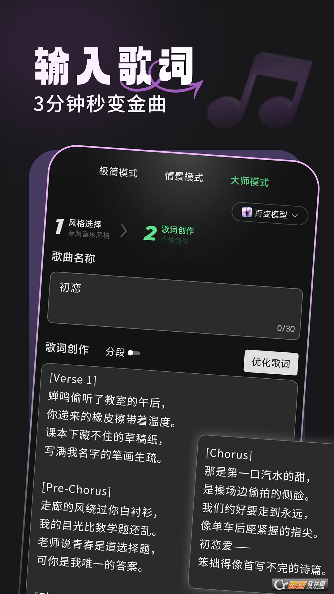 轻轻松松一键生成歌曲,编曲歌词也统统拿下