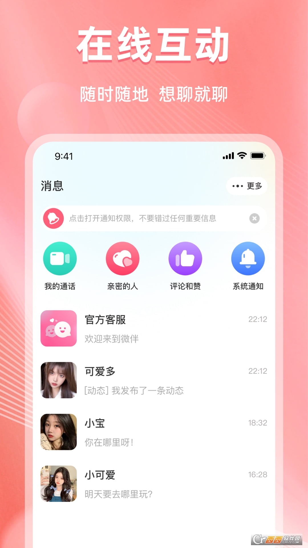 3. 高清视频互动,一键开启高清视频通话,画面清晰稳定,支持实时美颜功能。让你与伙伴见屏如面,拉近线上社交的距离,不管是分享身边风景,还是面对面倾诉心事,都能带来更真实、更亲近的社交体验。