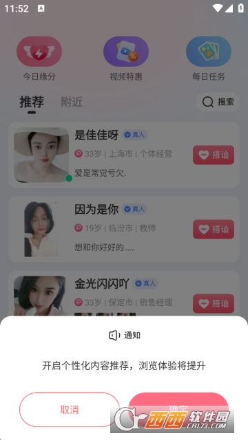 1. 精准伙伴推荐,基于用户的兴趣爱好和性格特质进行智能匹配。不用手动筛选,系统就能自动推送最契合的交友对象,每个推荐对象都附带简洁的兴趣标签,让你快速了解对方,轻松开启话题,避免无效社交。