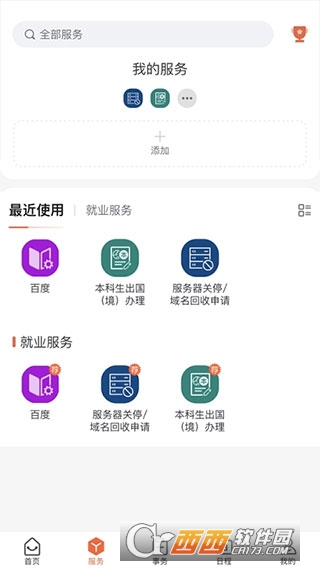 我的服务、最近使用、就业服务;
