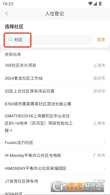 3,通过关键词搜索小区进行登记
