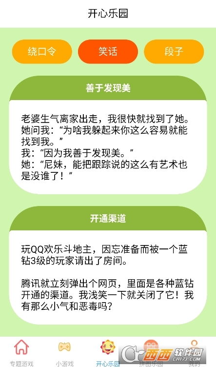 娱乐内容区:笑话集锦、绕口令挑战、搞笑短视频、趣味拼图游戏
