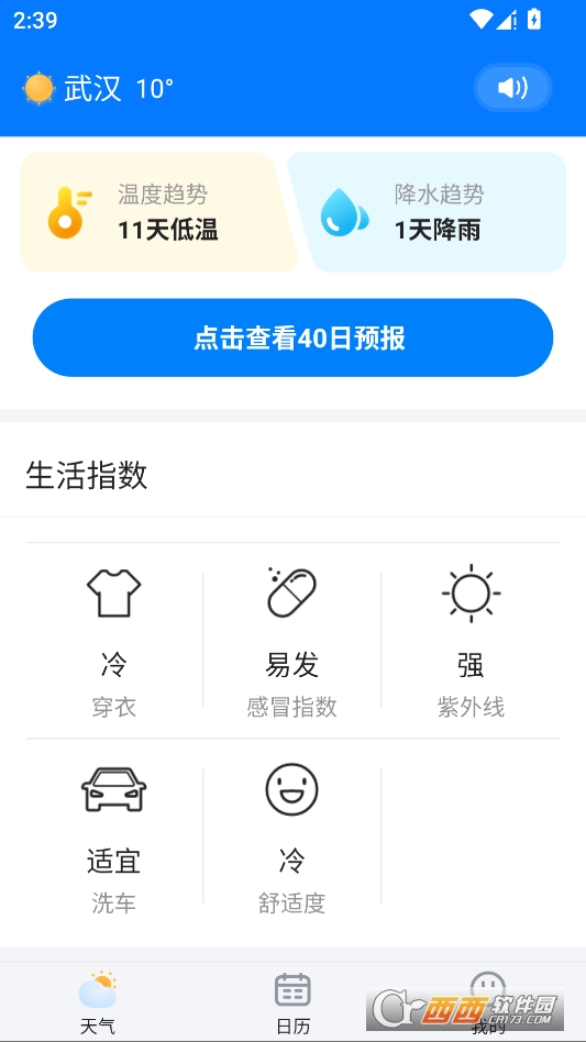 4. 实用生活指数一键获取,整合穿衣、紫外线、舒适度、洗车、运动等多种生活相关指数。每一项指数都有直白的文字指引,比如“建议穿薄外套”“紫外线强需涂防晒霜”,不用专业知识就能快速理解,直接应用到日常生活中。