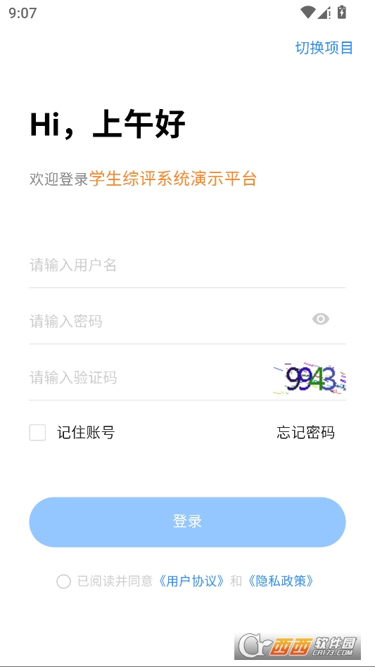 我们打开软件进入到登录界面,点击右上角的切换项目选项