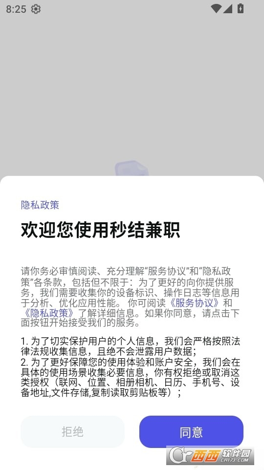 1.首先打开软件阅读完隐私政策后,点击“同意”按钮进入APP