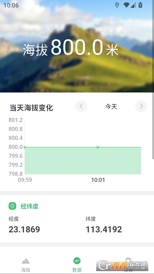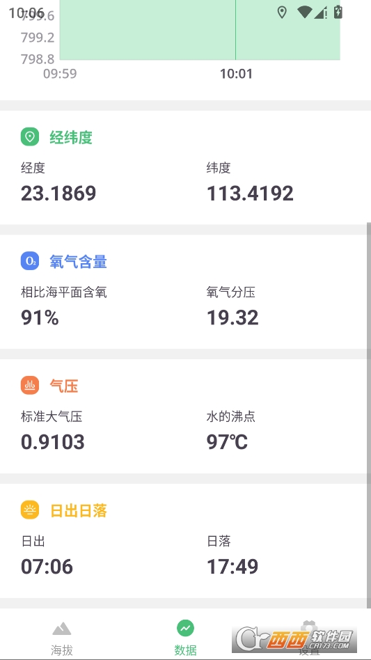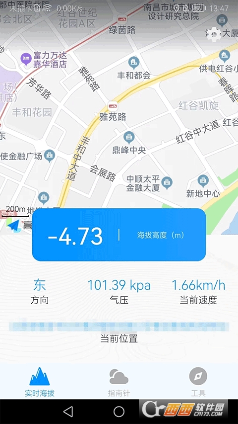 2、返回至软件实时海拔页面,你可以看到你当前所处的位置、方向、气压等具体信息。