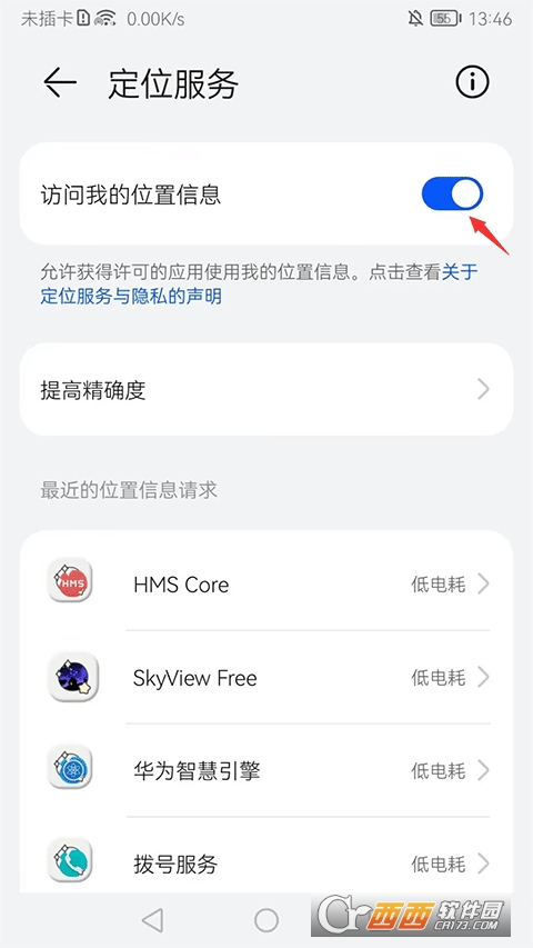 1、打开gps海拔高度测量仪手机版,手机会自动跳转至权限设置页面,一定保证位置访问是打开状态。