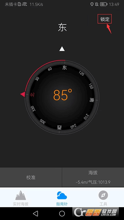 4、指南针的指向是根据用户的变动而实时改变的,如果你不想让他一直跳动,可以点击右上角的“锁定”。