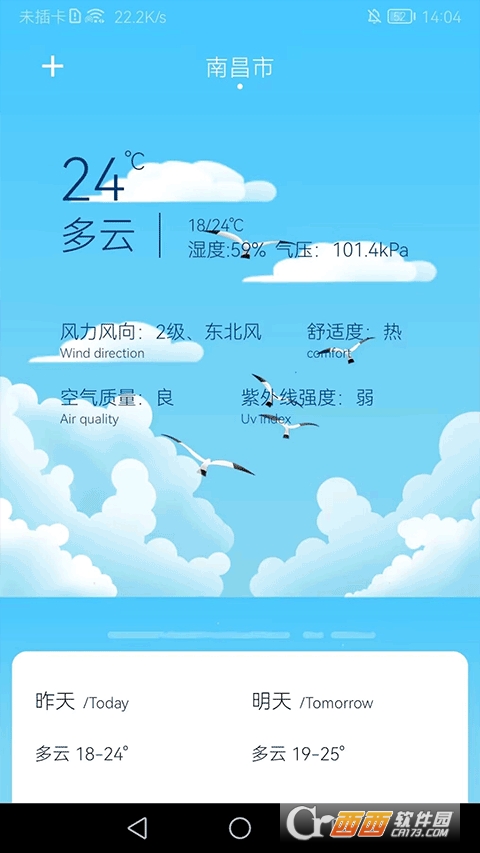 6、在天气预报页面滑动屏幕,即可查看查看自己所在城市的天气状况了。