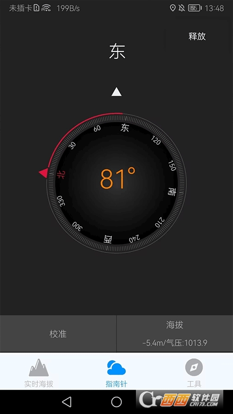 3、指南针会精准指引方向,同时在此页面也会显示海拔及气压。