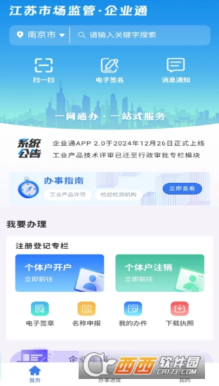 企业通APP是由江苏省市场监督管理局倾力打造的权威移动政务服务平台,依托企业通PC端功能延伸,以互联网 + 政务服务为核心导向,为全省企业及个体工商户提供高效、便捷、全面的一站式涉企服务。平台深度整合注册登记、事项办理、信息查询、企业空间等多元功能,通过统一认证实现一平台、一账号、一入口的便捷体验,关联苏服办APP、政务服务网等多系统无缝跳转,彻底告别重复注册与跨平台切换的繁琐。