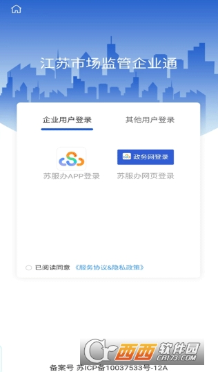 1、由代理人打开“企业通”APP,使用苏服办APP授权登录。