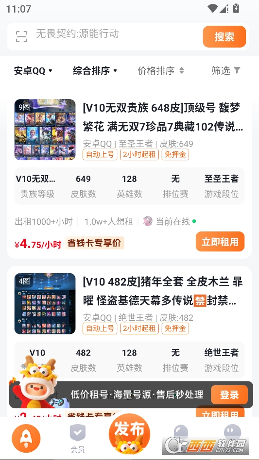 1. 账号资源丰富且优质,覆盖百余款热门端游手游。每一个上架账号都经过平台严格筛选和审核,详细核查账号段位、皮肤道具、信誉分等信息,杜绝“外挂号”“封禁号”,确保账号信息真实,避免出现“货不对板”的情况,让用户租得放心、买得安心。