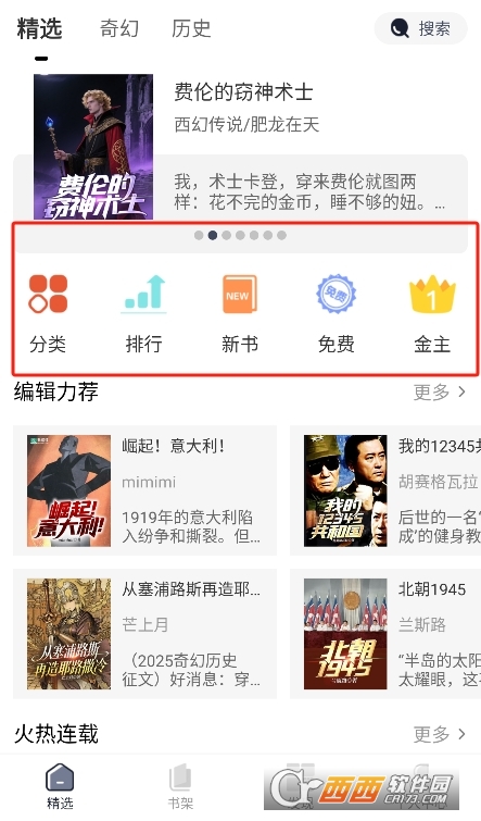 特色书单:编辑精选、大神书单、影视原著、获奖作品