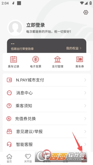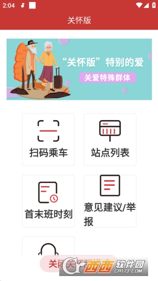 3、在“关怀版”中,有着简介的界面显示,直观的使用扫码乘车查看信息,需要登录才行哦。