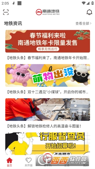 南通地铁app最新客户端是一款专为南通本地居民打造的便捷地铁出行辅助工具,不仅能够提供全市地铁路线图一览,最新的官方资讯新闻,还能查看实时的车次位置,票价查询以及电子发票,登录账号后就能一键出示地铁码乘车,还为老年用户提供了关怀大字版,为用户的地铁出行提供高效便利。